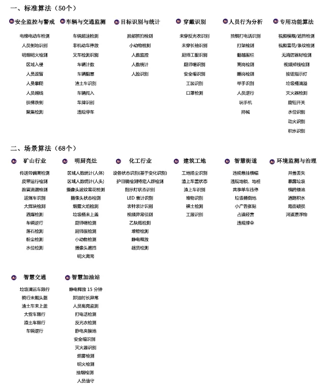 继 118 项通用算法发布后,我们针对智慧高速发布垂直专用算法,深度融合高速公路运营核心需求,覆盖交通行为监管、道路风险预警、通行安全防护等全环节,以 AI 技术重构全域高速监管体系。算法包括: